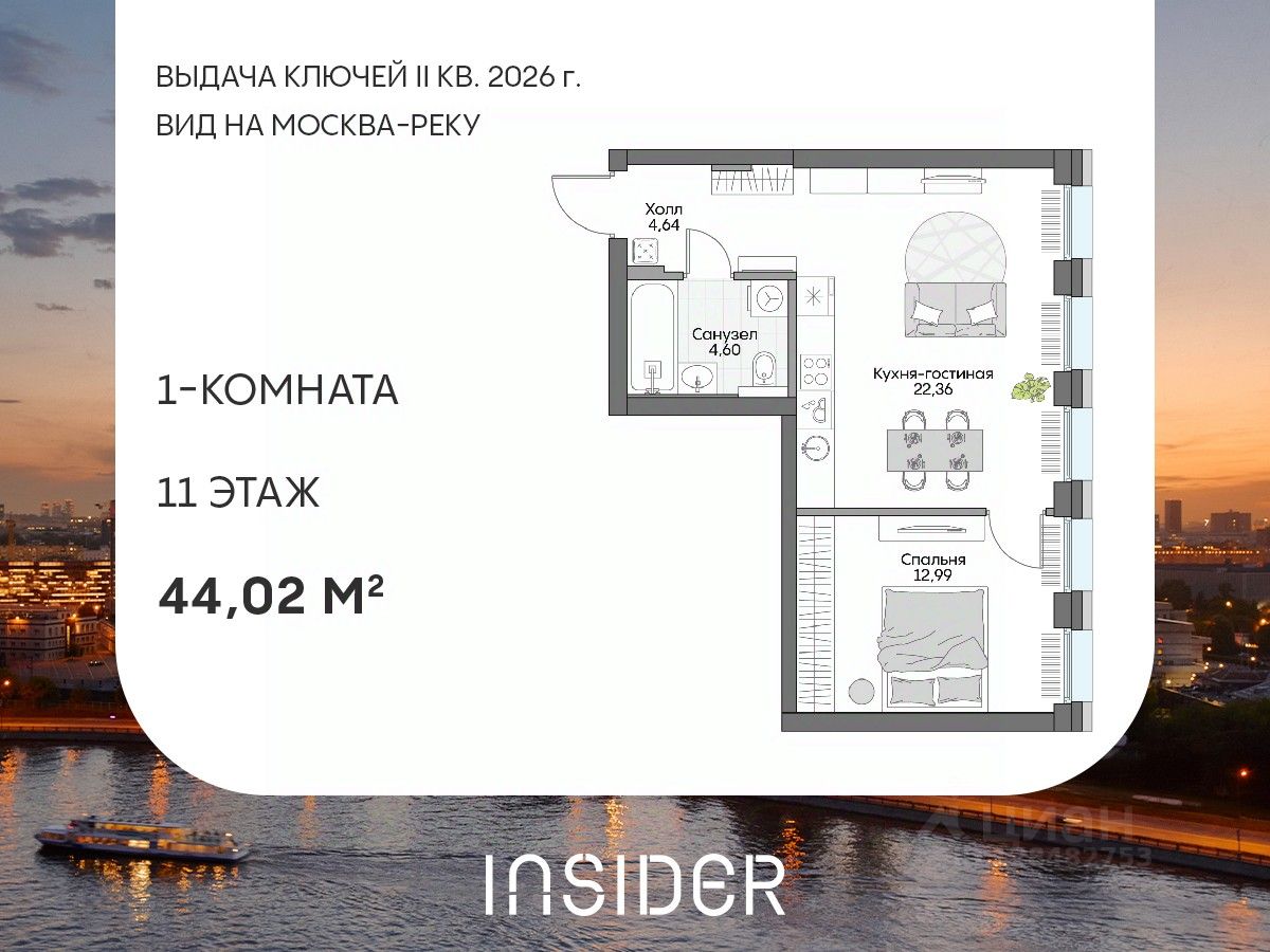 Агентам не звонить. Просторный однокомнатный лот в Доме на набережной INSIDER. Сервисные лоты с системой "умный дом" на первой линии Москвы-реки.