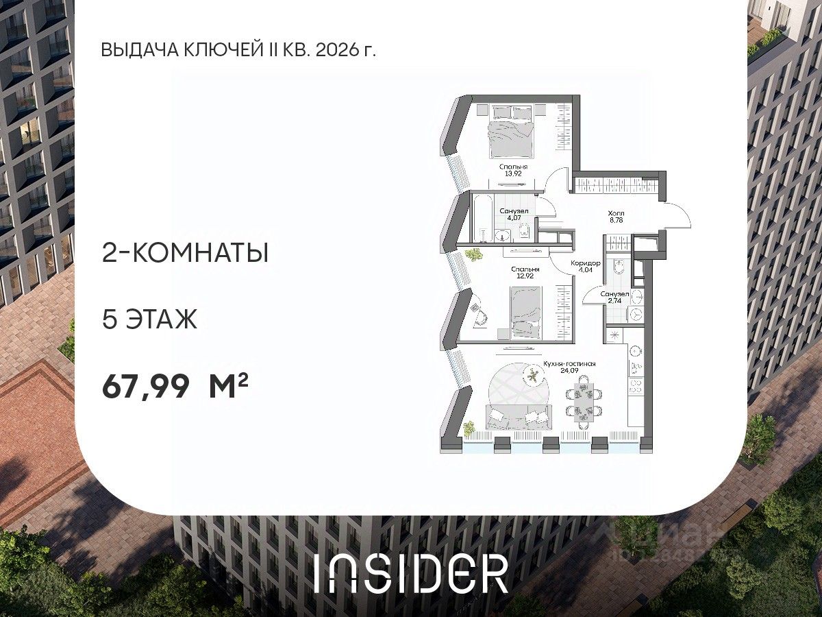 Просторный двухкомнатный лот в Доме на набережной INSIDER. Сервисные лоты с системой "умный дом" на первой линии Москвы-реки.