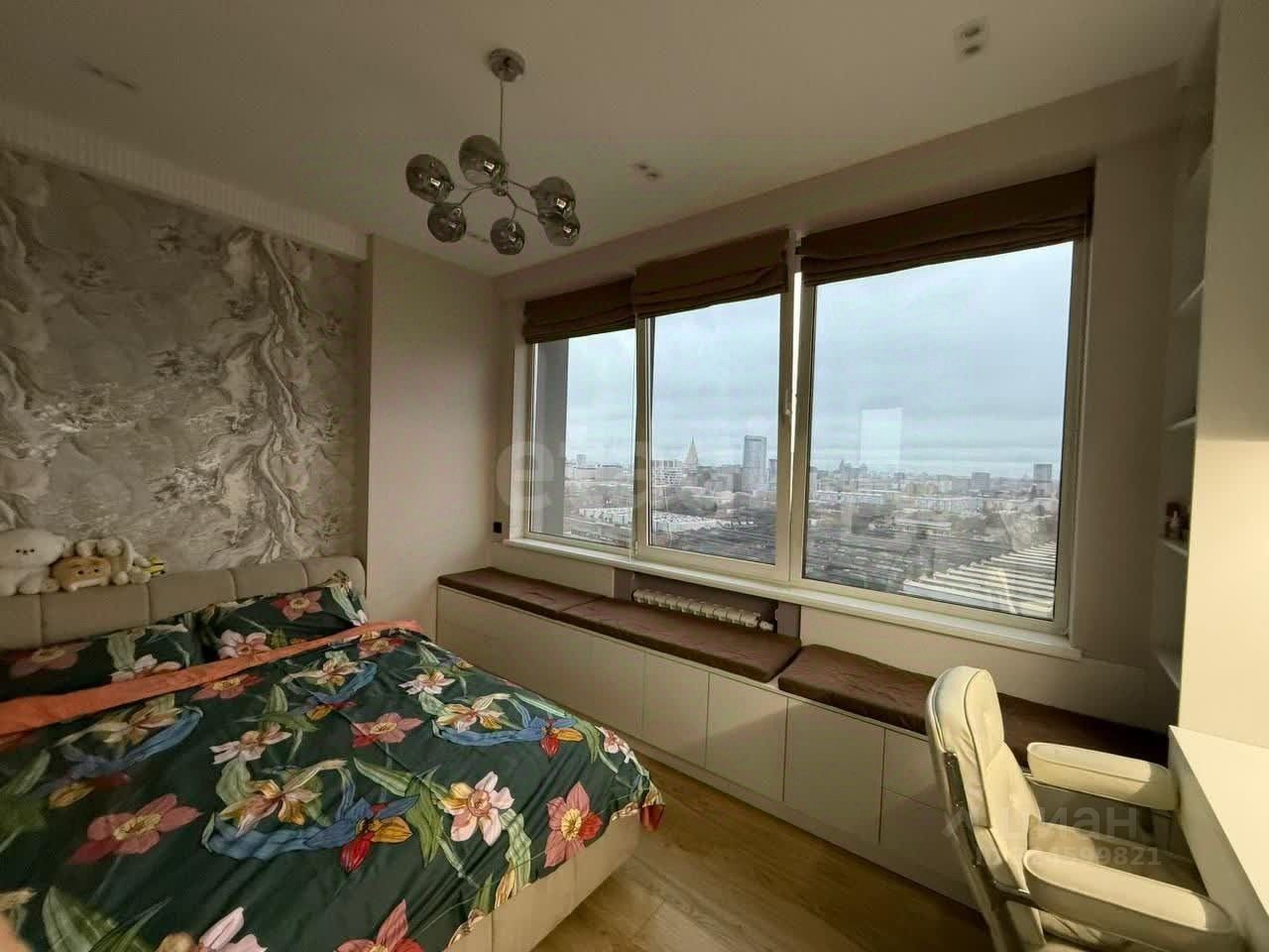 В квартире выполнена эффективная планировка: две изолированные комнаты, кухня-гостиная и совмещенный санузел. Панорамные окна, выходящие на юго-восток, обеспечивают квартиру естественным светом в течение всего дня и открывают впечатляющие виды на Москву.