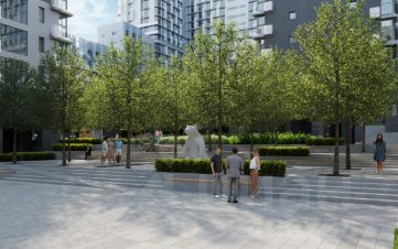 - Безбарьерная среда с многоуровневым ландшафтным парком, детскими площадками, зонами для отдыха и арт-объектами