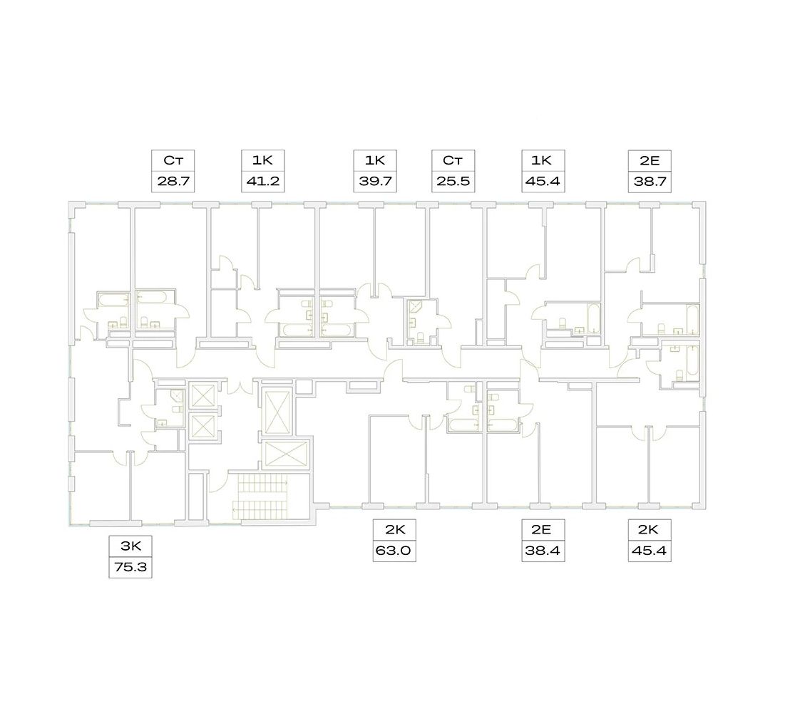 - В каждом лобби — общественный санузел, мягкая зона ожидания, отдельные помещения для хранения колясок, велосипедов и самокатов, а также помещения для мойки лап собакам