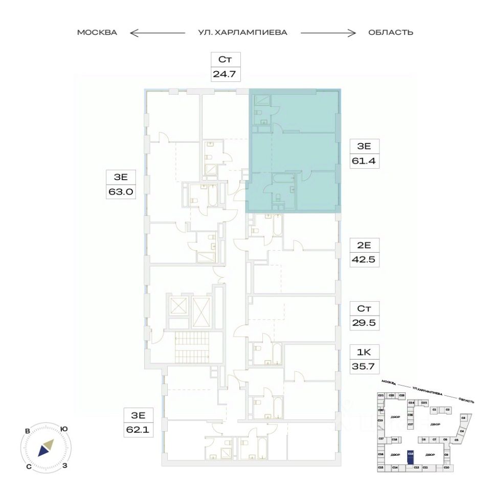 ЖК "Детали" | 3-комнатная квартира, 61.40 м², 4-й этаж.