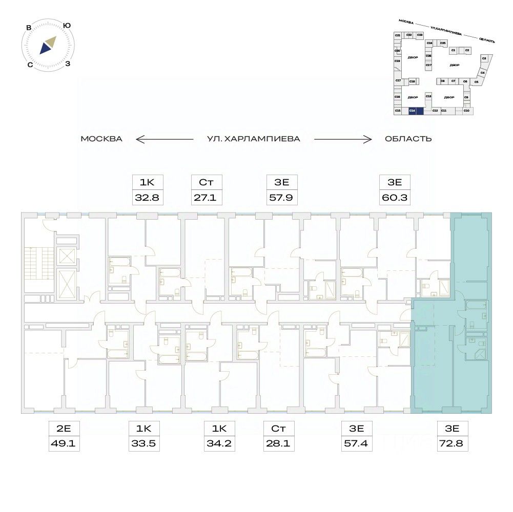 ЖК "Детали" | 3-комнатная квартира, 72.80 м², 3-й этаж.