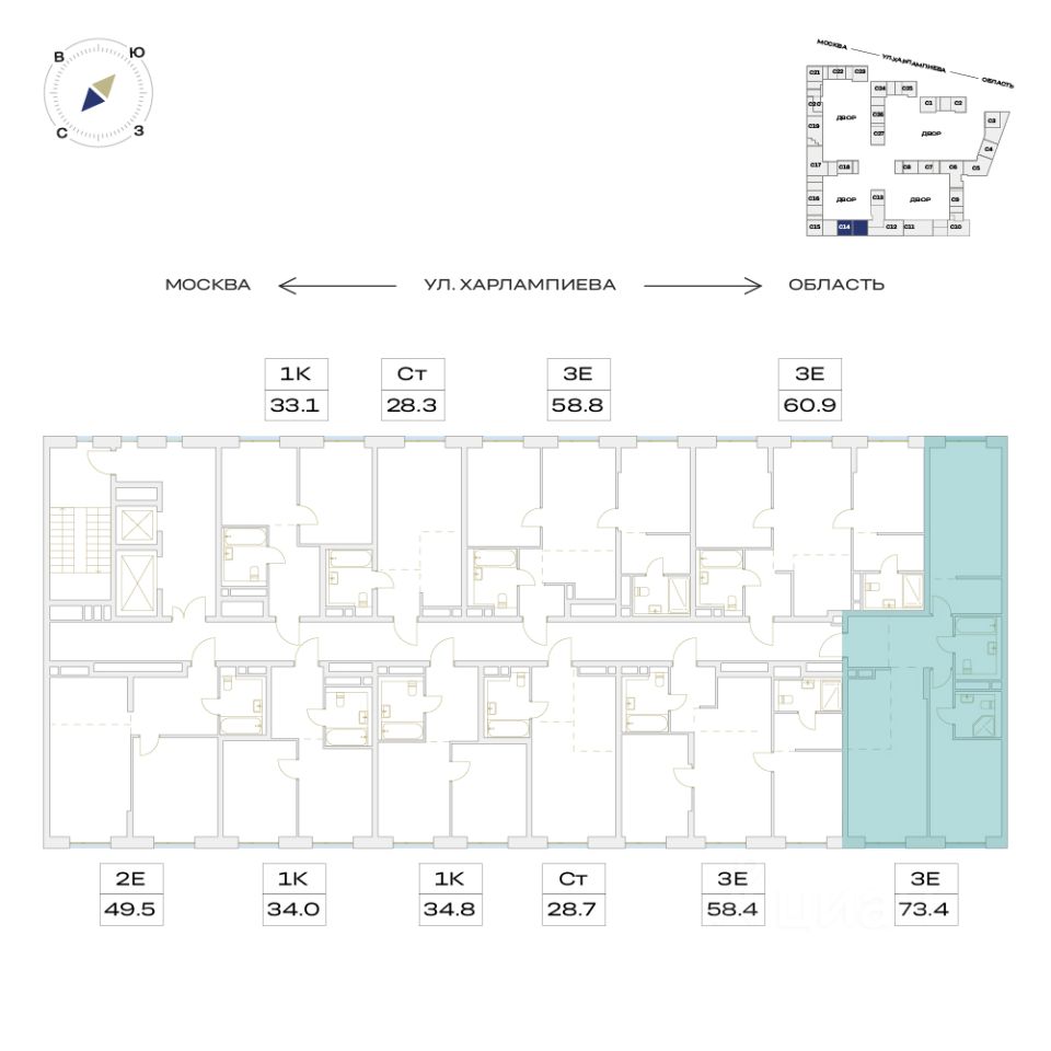 ЖК "Детали" | 3-комнатная квартира, 74.30 м², 6-й этаж.