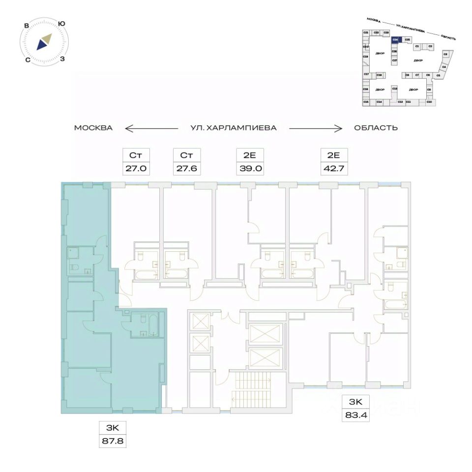 ЖК "Детали" | 4-комнатная квартира, 87.80 м², 9-й этаж.