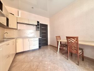* Кухонный гарнитур, холодильник, СВЧ, обеденный стол