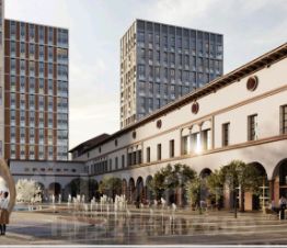 Ключевым элементом квартала станет восстановленное здание Изофабрики — историческое здание 1930-х гг. в стиле итальянского Ренессанса, которое преобразится в творческое пространство: мастерские, выставочные залы, коворкинги, пространства для лекций, кафе, студии йоги и др.