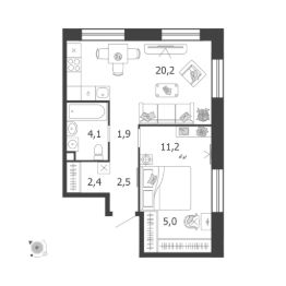 Продается 1-к квартира без отделки в ЖК "Shagal".