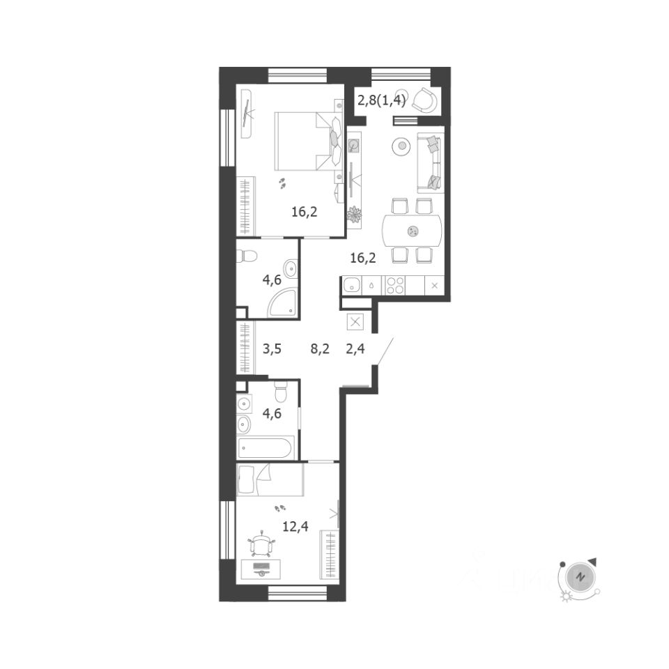 Общая площадь квартиры — 69.5 кв. м, этаж 11 из 18.