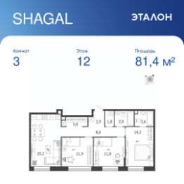 Общая площадь квартиры — 81.4 кв. м, этаж 12 из 18.