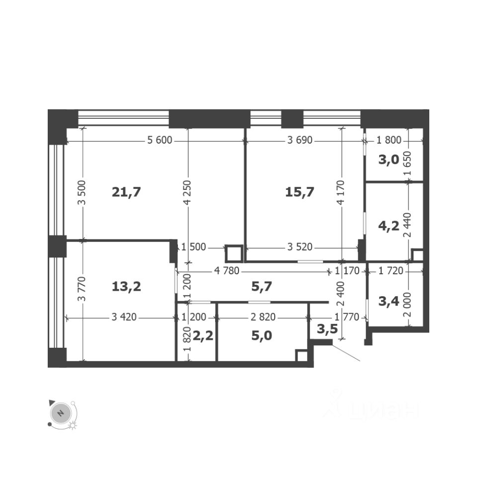 Общая площадь квартиры — 77.6 кв. м, этаж 2 из 13.