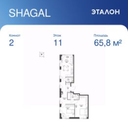 Общая площадь квартиры — 65.8 кв. м, этаж 11 из 20.