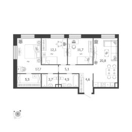 Продается 3-к квартира без отделки в ЖК "Shagal".