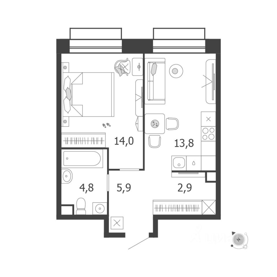 Продается 1-к квартира без отделки в ЖК "Шагал".
