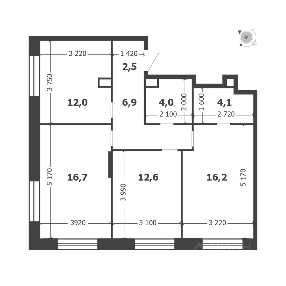 Продается 3-к квартира без отделки в ЖК "Shagal".