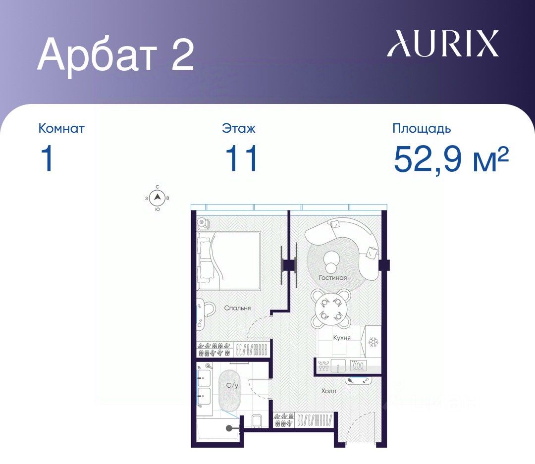 Общая площадь52,9 м²