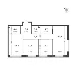 Продается 3-к квартира без отделки в ЖК "Shagal".