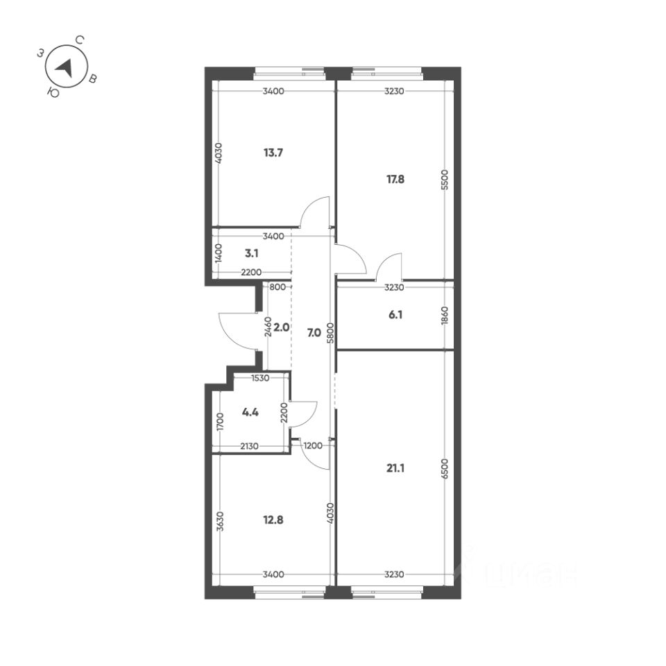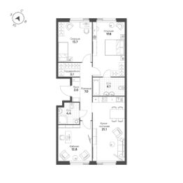 Продается 3-к квартира без отделки в ЖК "Shagal".