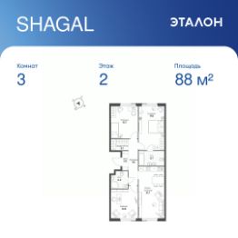 Общая площадь квартиры — 88 кв. м, этаж 2 из 8.