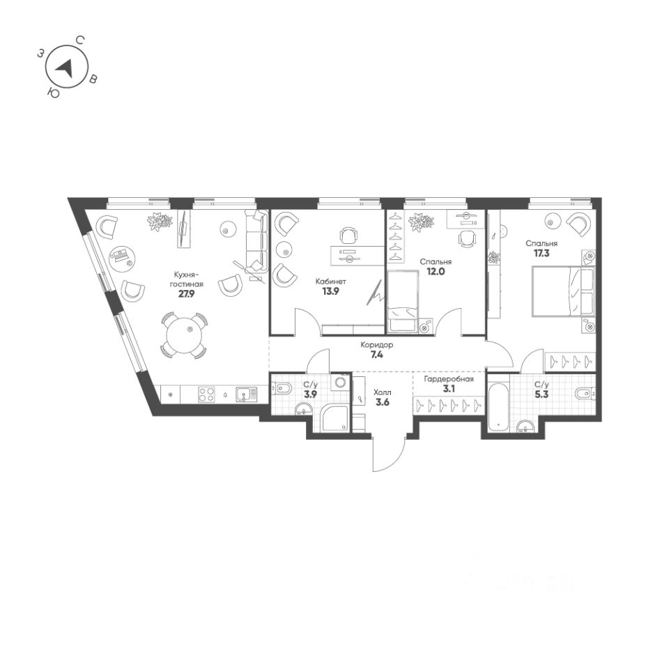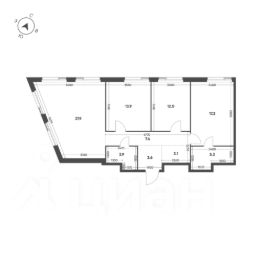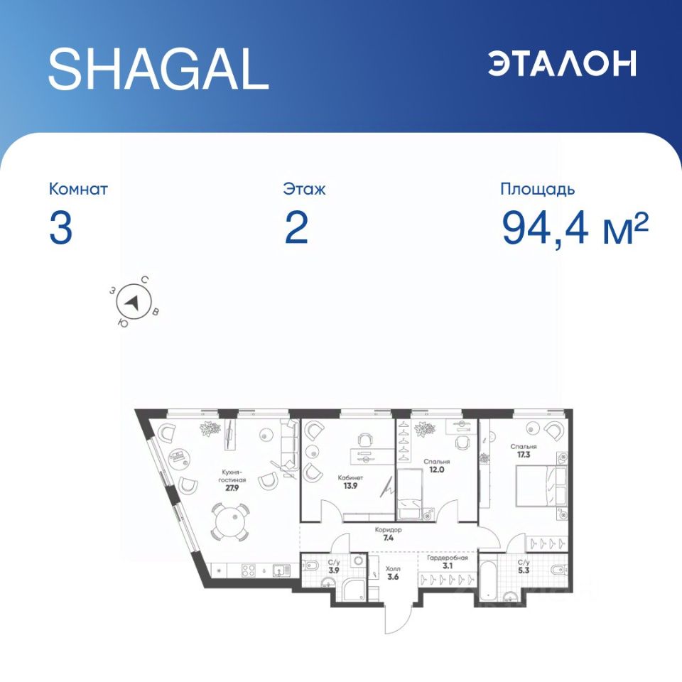 Продается 3-к квартира без отделки в ЖК "Shagal".