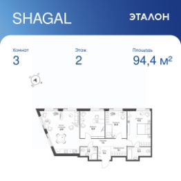 Общая площадь квартиры — 94.4 кв. м, этаж 2 из 8.