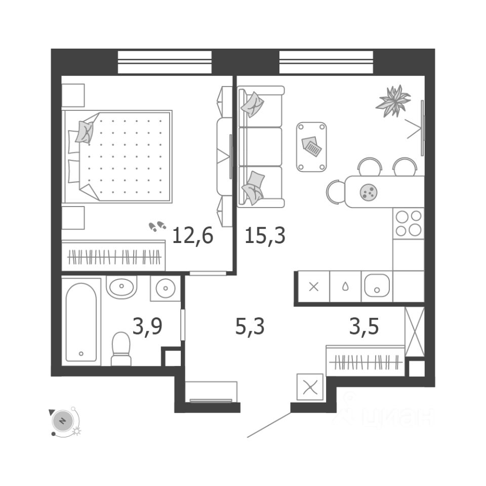 Общая площадь квартиры — 40.6 кв. м, этаж 5 из 18.