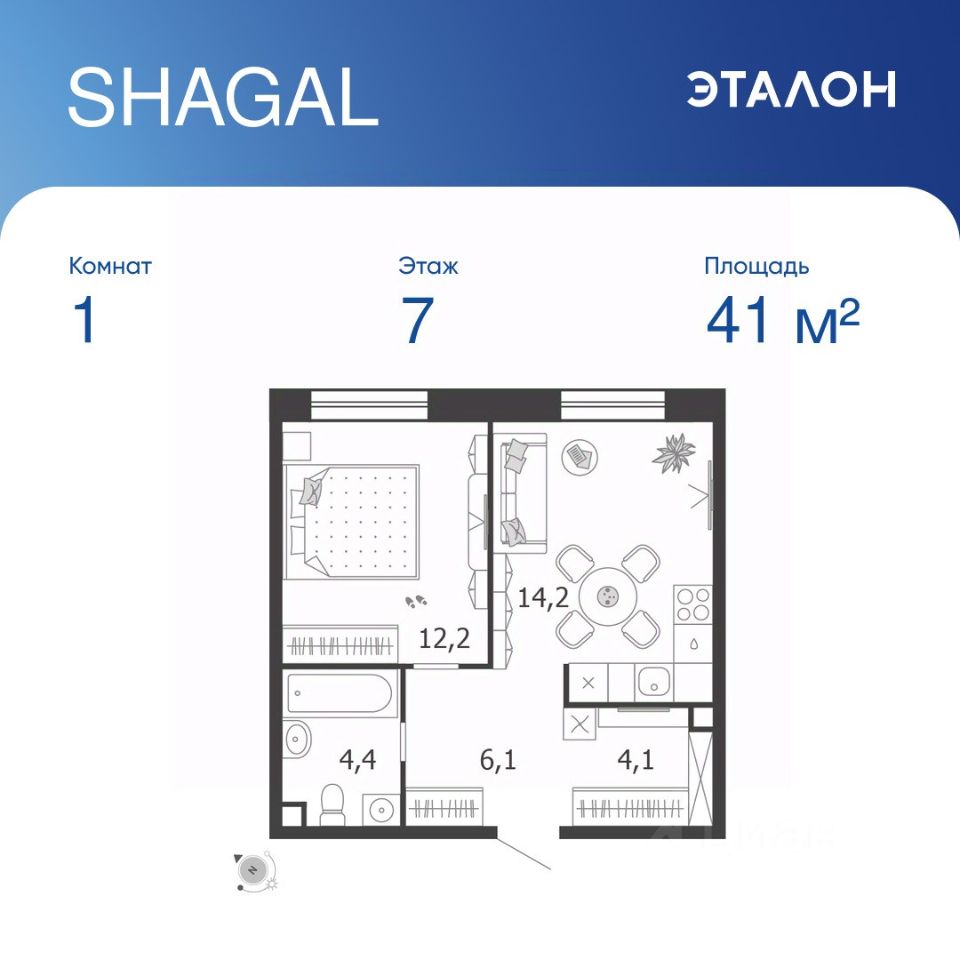 Общая площадь квартиры — 41 кв. м, этаж 7 из 18.