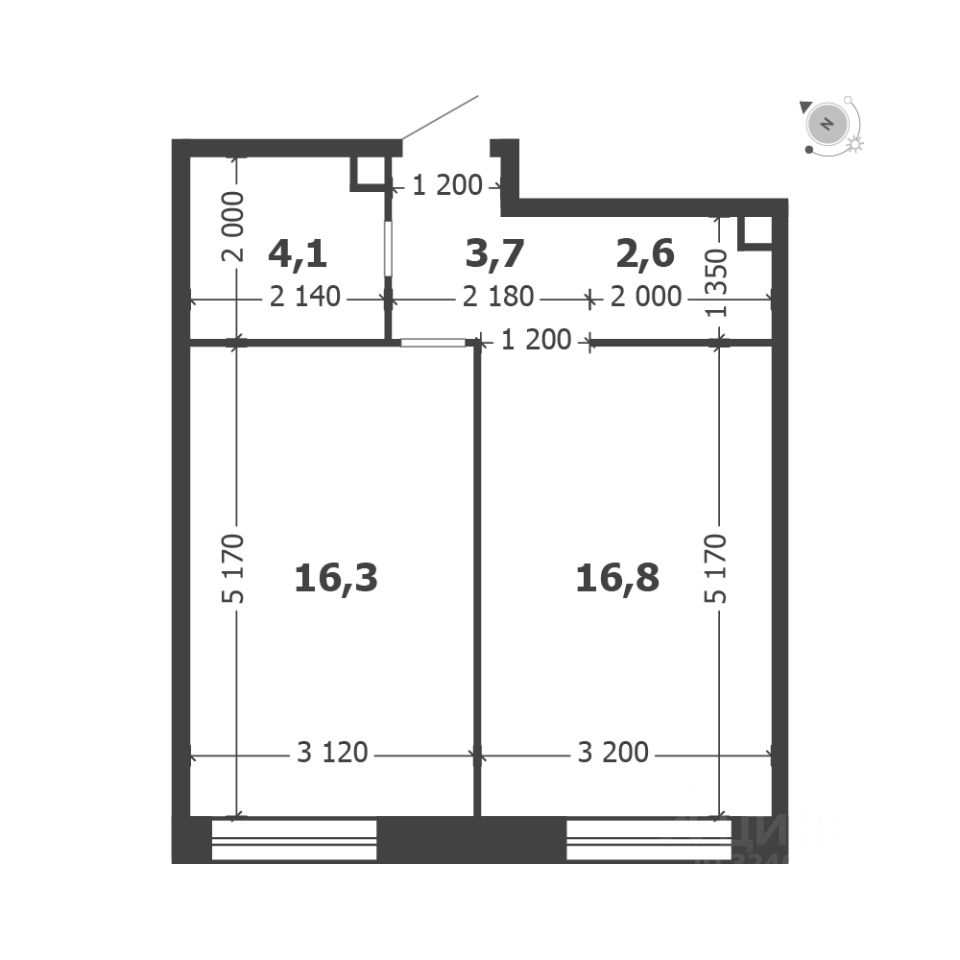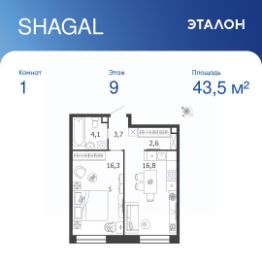 Общая площадь квартиры — 43.5 кв. м, этаж 9 из 18.