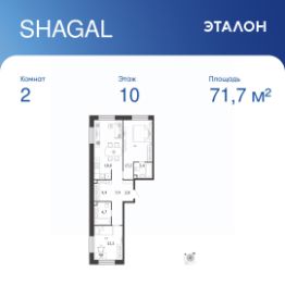 Общая площадь квартиры — 71.7 кв. м, этаж 10 из 18.