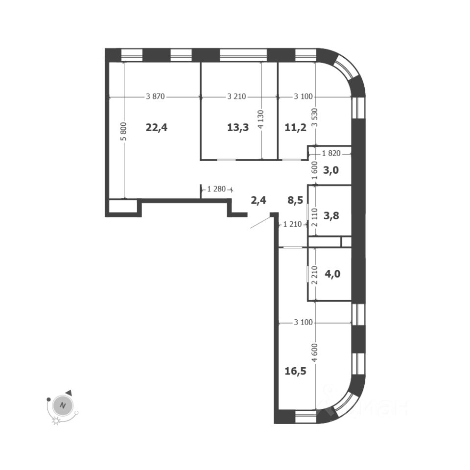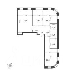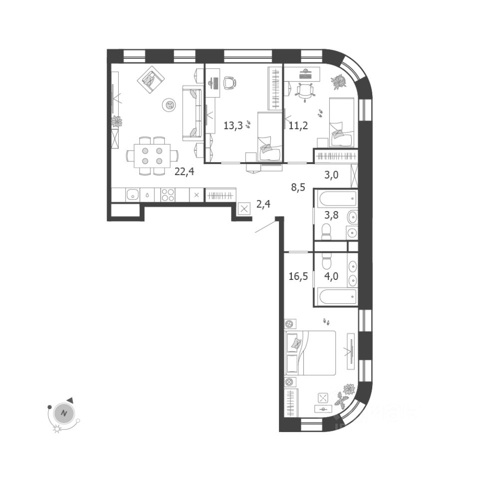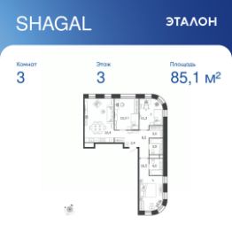 Общая площадь квартиры — 85.1 кв. м, этаж 3 из 4.