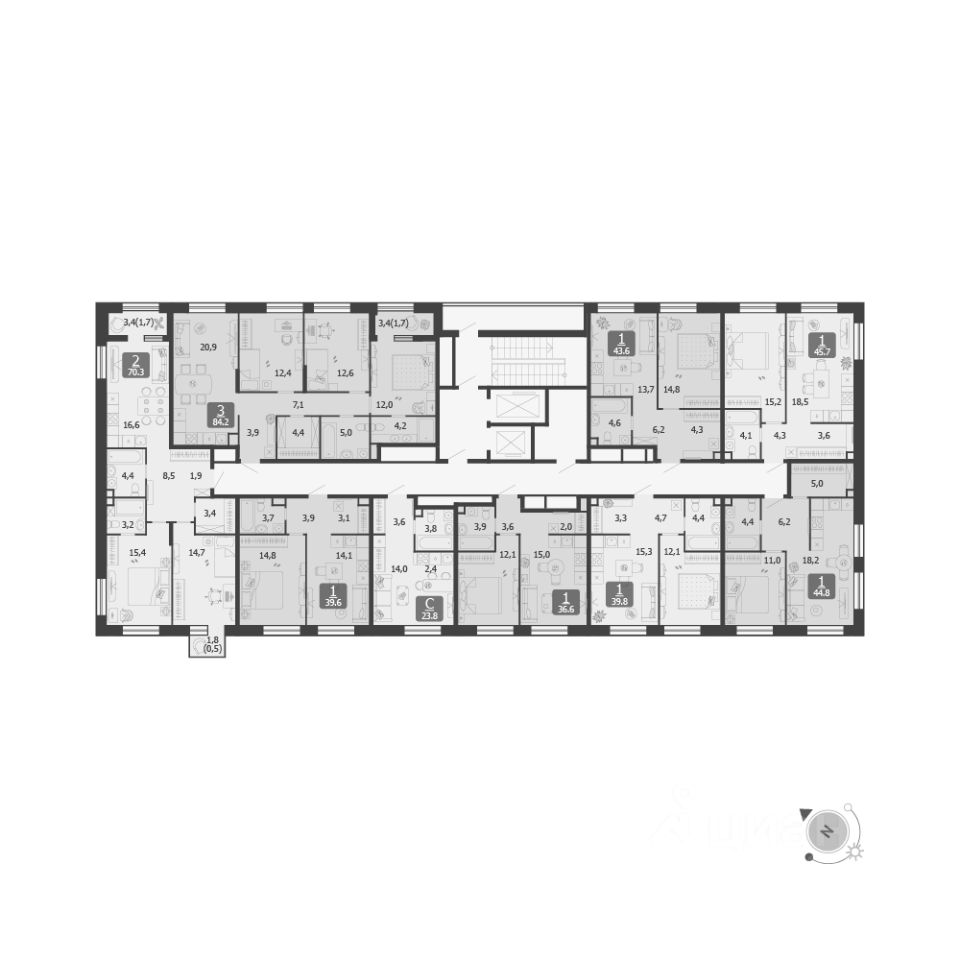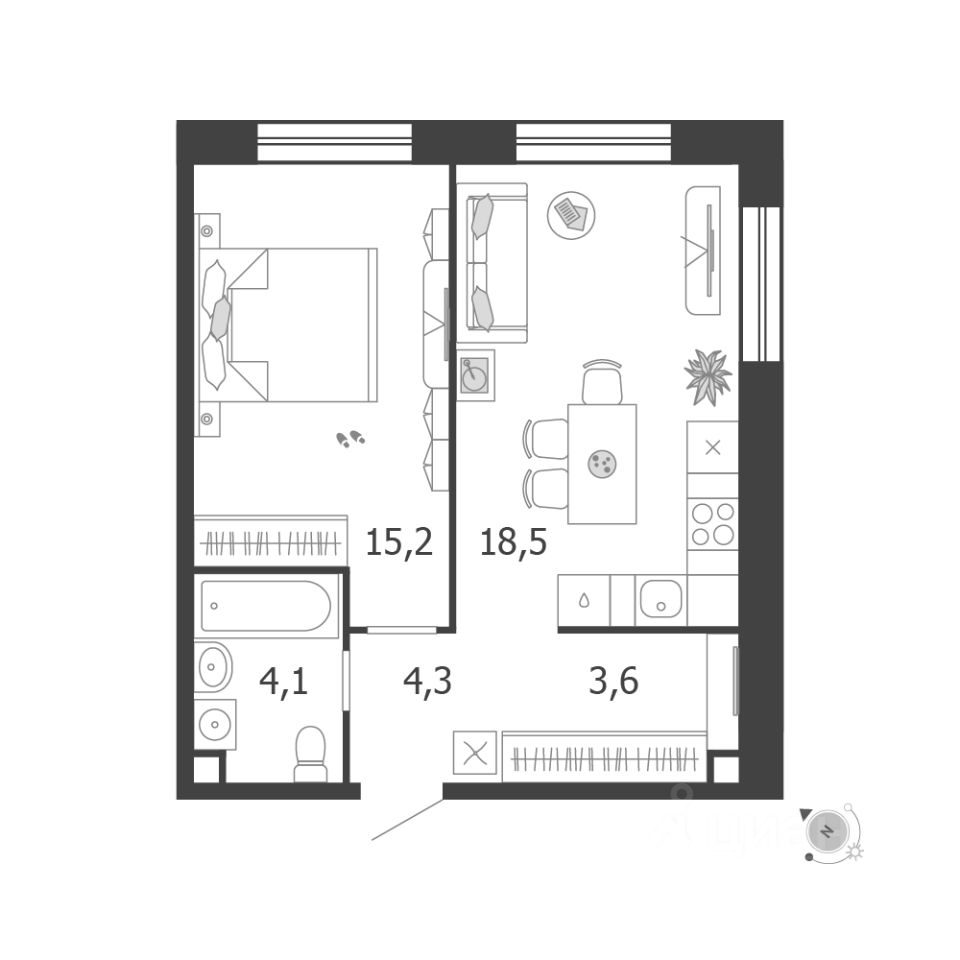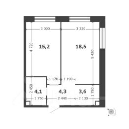 Общая площадь квартиры — 45.7 кв. м, этаж 5 из 18.