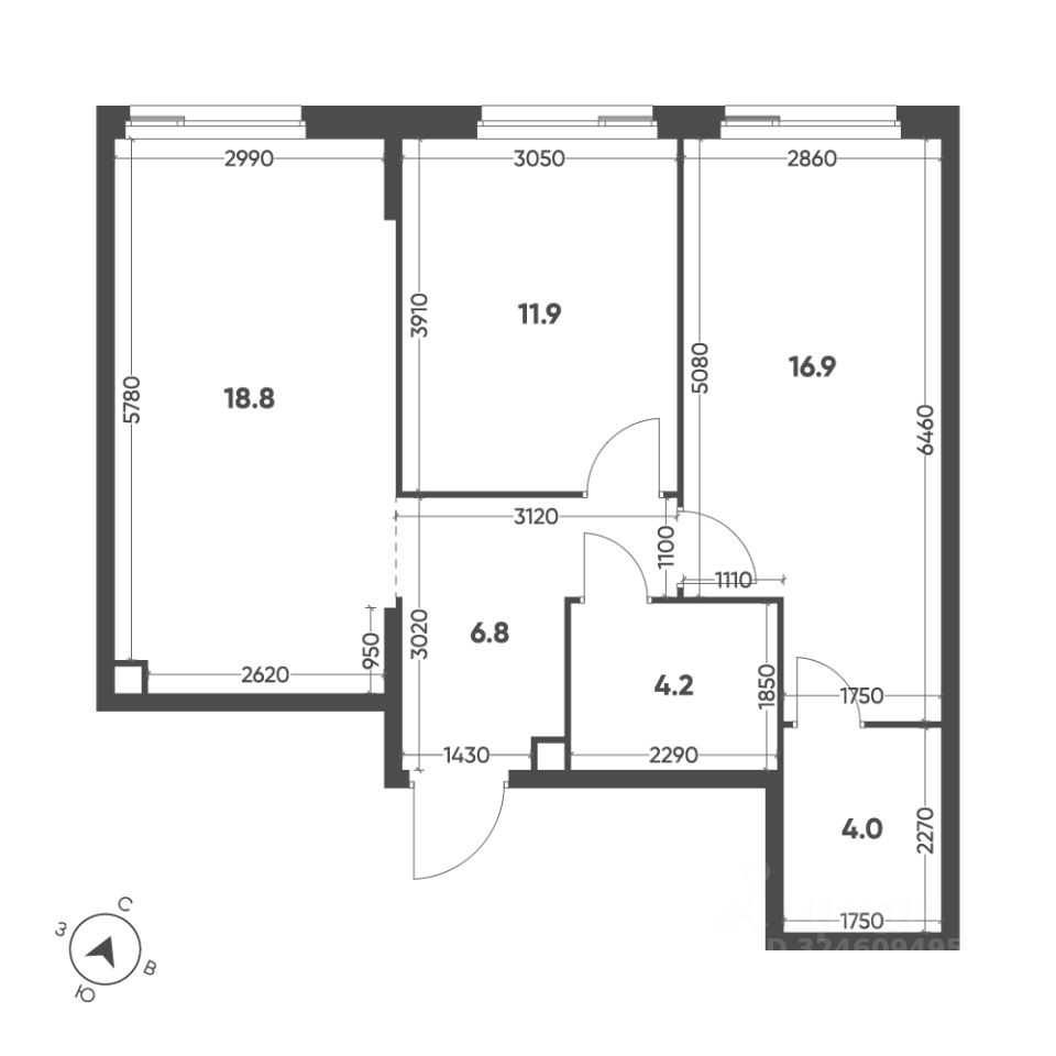 Общая площадь квартиры — 62.6 кв. м, этаж 2 из 8.