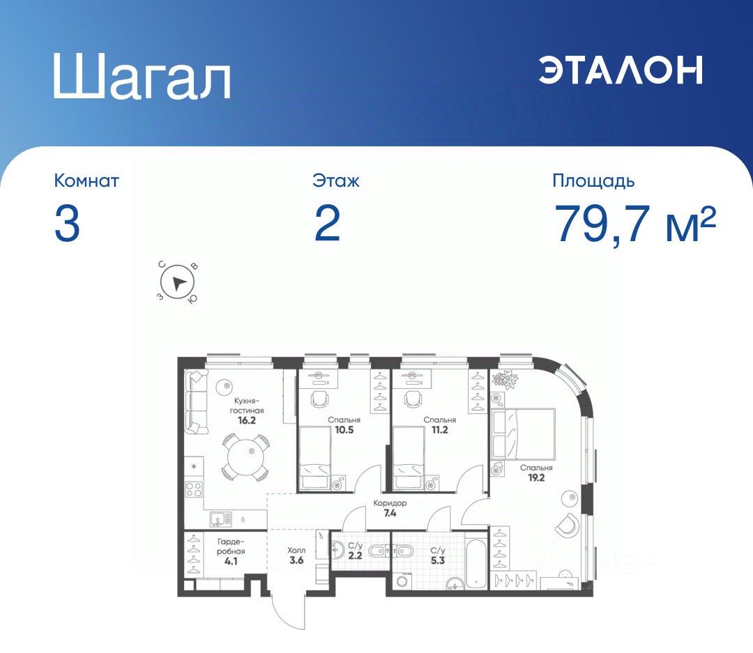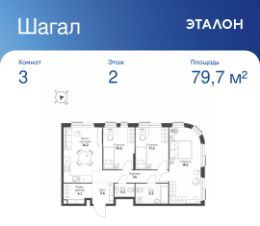 Общая площадь квартиры — 79.7 кв. м, этаж 2 из 5.