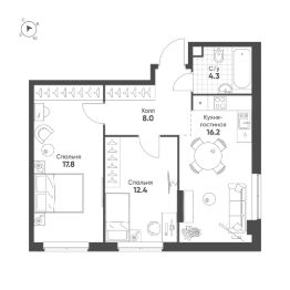 Продается 2-к квартира без отделки в ЖК "Sokolinn Park".