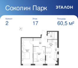Общая площадь квартиры — 60.5 кв. м, этаж 17 из 21.
