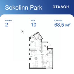 Общая площадь квартиры — 68.5 кв. м, этаж 10 из 21.
