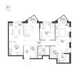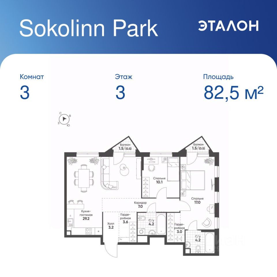 Общая площадь квартиры — 82.5 кв. м, этаж 3 из 21.