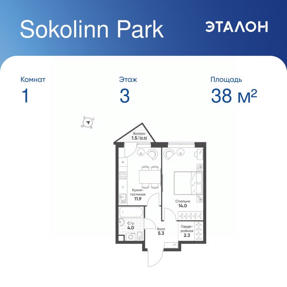 Продается 1-к квартира без отделки в ЖК "Sokolinn Park".