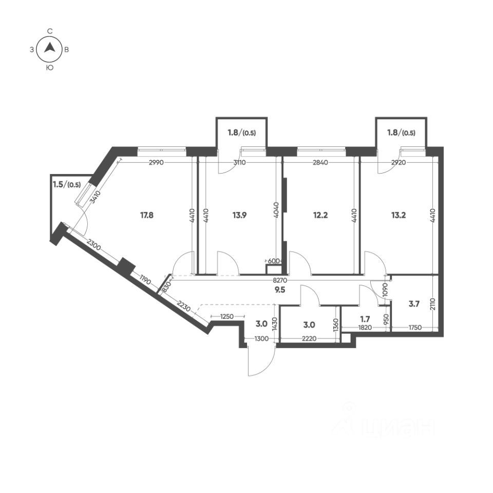 Общая площадь квартиры — 79.5 кв. м, этаж 3 из 12.