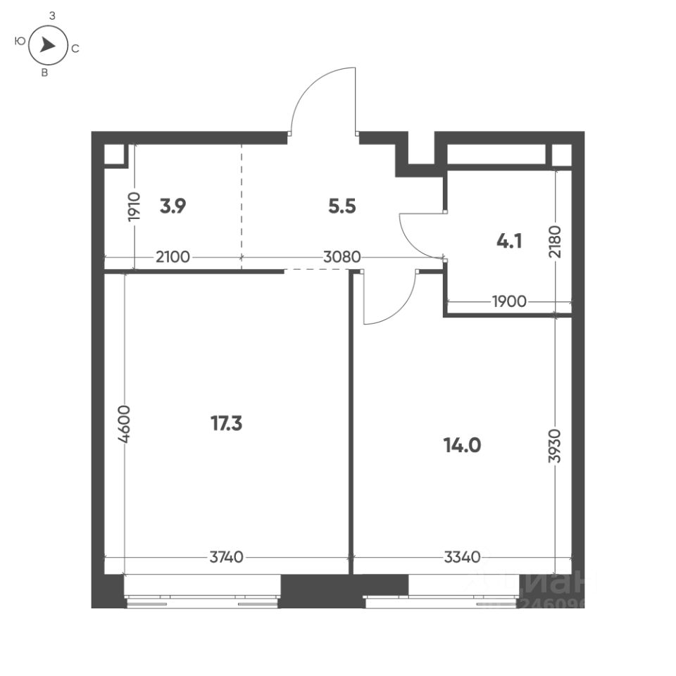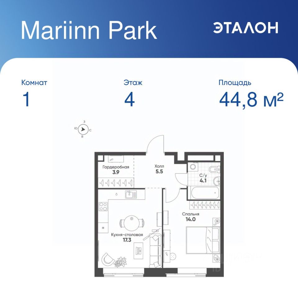 Общая площадь квартиры — 44.8 кв. м, этаж 4 из 16.
