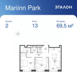 Общая площадь квартиры — 69.5 кв. м, этаж 13 из 16.