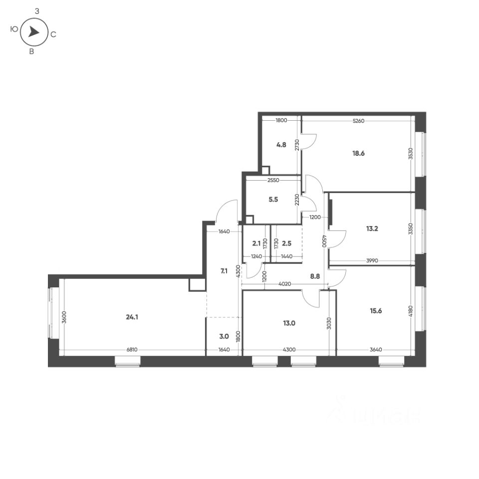Продается 4-к квартира без отделки в ЖК "Mariinn Park".