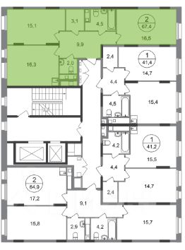 Общая площадь квартиры - 67,4 кв. м, этаж 8 из 17.