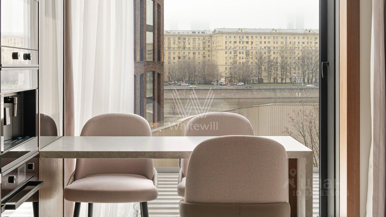 Просторная квартира с тремя спальнями и патио в комплексе премиум-класса Savvin River Residence на набережной Москвы-реки. Квартира общей площадью 177 м² расположена на четвёртом этаже. Интерьер оформлен в современном стиле. Установлены системы увлажнения воздуха и датчики протечек воды. Квартира укомплектована мебелью и бытовой техникой.