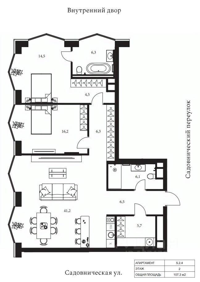 Общая площадь107,3 м²