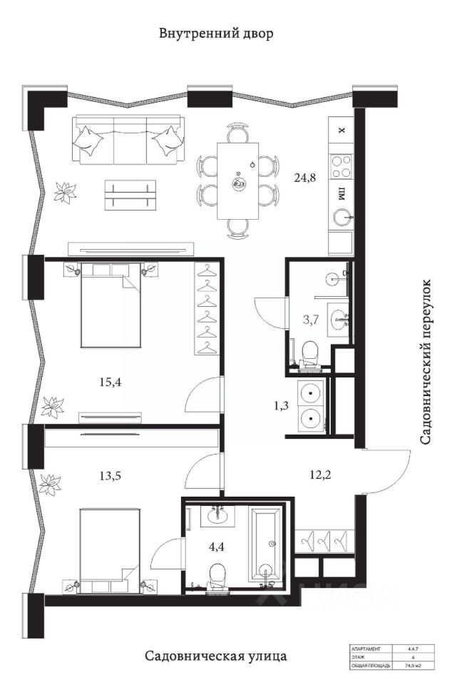 Общая площадь74,9 м²