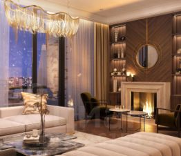 Архитектура проекта - современное прочтение торжественного и изящного стиля ар-деко, который, как и сталинский ампир, сформировался в результате развития идей чикагской школы. В доме 6 секций, 115 вариантов продуманных планировочных решений - от уютных студий до просторных пентхаусов с дровяным камином. В каждой квартире предусмотрен полный комплекс систем комфорта: принудительная центральная вентиляция с фильтрацией воздуха, очистка воды до уровня питьевой, круглогодичное горячее водоснабжение, быстрые бесшумные лифты, которые идут прямо в паркинг, продуманная подготовка под кондиционирование и другие технологические решения.