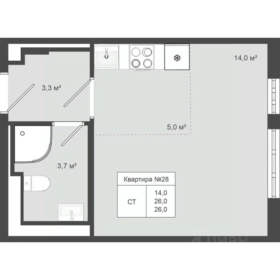 Продается студия площадью 26 кв.м. на 4-м этаже