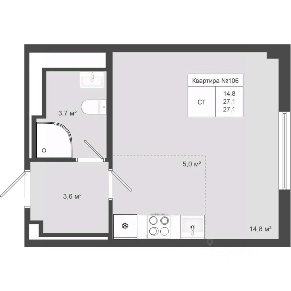 Продается студия площадью 27.1 кв.м. на 3-м этаже