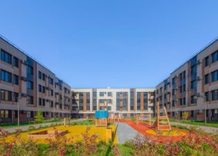 Элегантный минимализм в архитектуре разработан так, чтобы не нарушить, а дополнить гармонию окружающего ландшафта. Пластика фасада базируется на простой геометрии, а отличительной особенностью комплекса является невысокая этажность (4 этажа) большей части домов. Только два корпуса — 11 и 16 этажей.